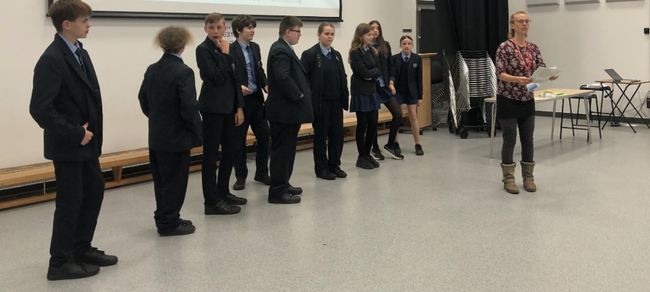 Ali Wheeler from Nature Links came to talk to Year 8 about the Rain Garden project she led with ten Year 8 students. The students received an award for the contribution they made to designing and carrying out the project which involved creating natural drainage for run off from the roof and road to reduce the flood risk. The students dug trenches and lined them with a variety of materials to allow water to be channelled to a soakaway type of depression in the ground. They also planted a variety of species of plant. All students in the assembly were offered leaflets inviting them to take part in other conservation projects.
